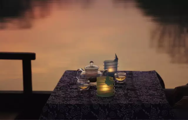夕阳余光下,点上船头的老船灯和桌上的蜡烛,享受烛光晚餐的浪漫,品味一份舌尖上的柔软时光。