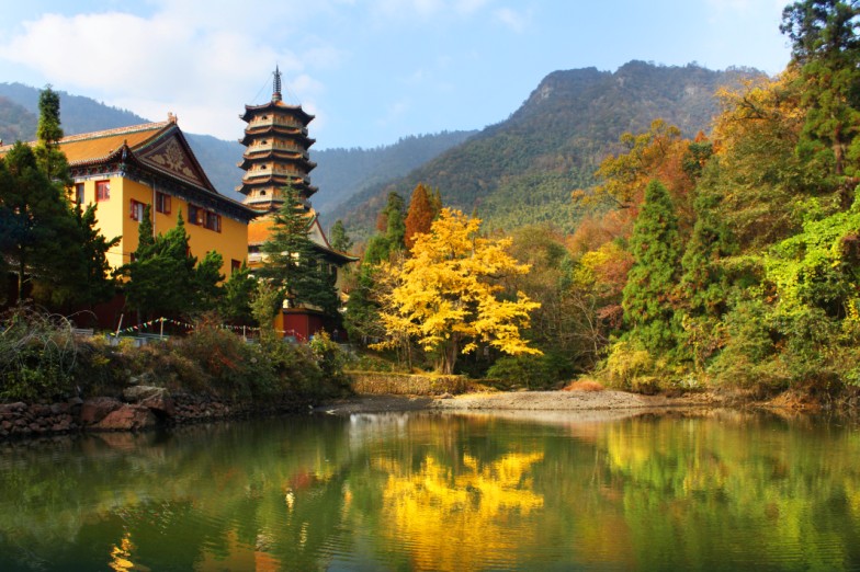 杜甫有诗曰:花重锦官城。我想改诗句:绿重天目山。