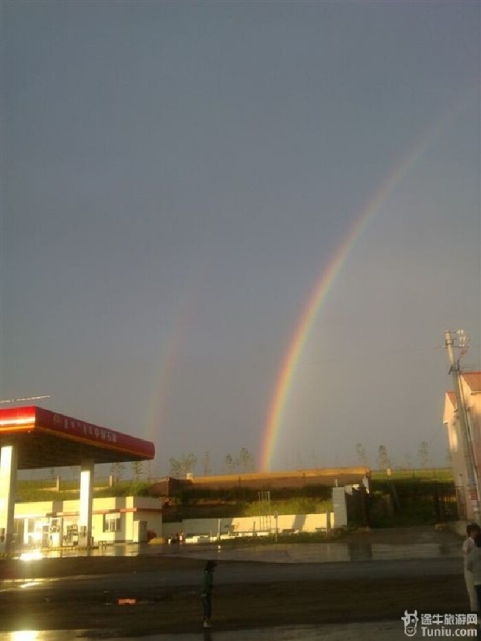 平身第一见,我们团里的最好摄影者的相机也拍不下来双彩的弧度,因为双彩弧度太大,等我反过神想拍照,有一道彩虹已经有些消退,不过还是拍了一小片段。天降祥瑞的时候不知道当地是否有小公主或者小王子降临,呵呵我感觉自己真是太爱幻想了。