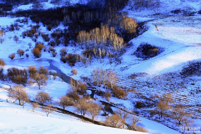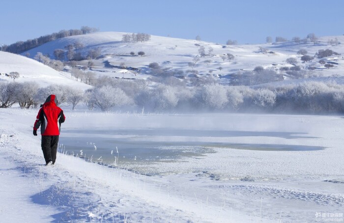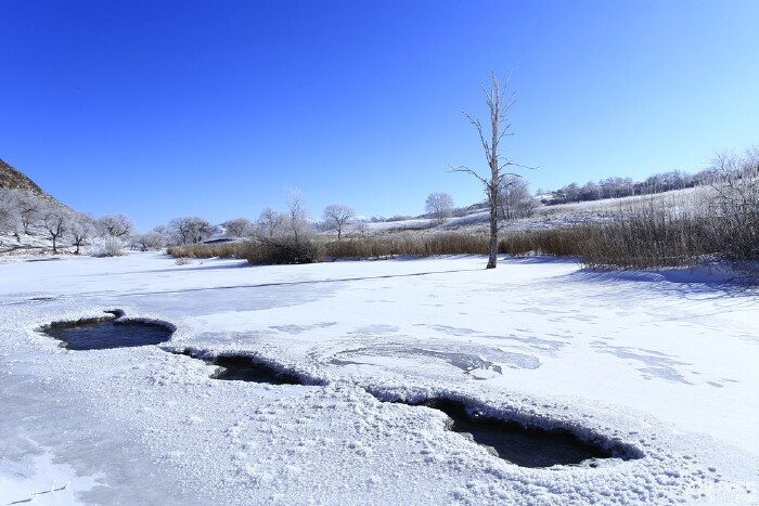 下午我们去了暖水,开车大约25分钟,具体线路可看地图,从公主湖往里走大概8公里。暖水是一个冬天也冻不严的小河,即使在-40°的坝上,小河中有很多温泉流入,景色非常好,这也是我最推崇的地方之一。