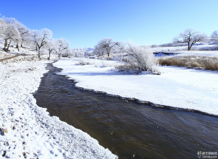 冰雪覆盖的河沿