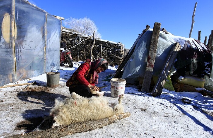 暖水唯一的一户牧羊人家,晚饭在这解决,杀了一只羊,大婶给做的手把羊肉。