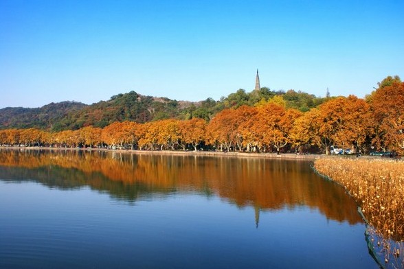 此湖秀丽的湖光山色和众多的名胜早已闻名中外。景区内群山高度都不超过400米,环布在西湖的南、西、北三面,其中的吴山和宝石山象两只手臂,一南一北,伸向市区,构成优美的杭城空间轮廓线。