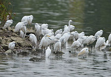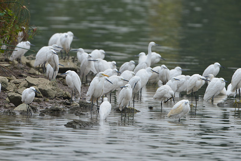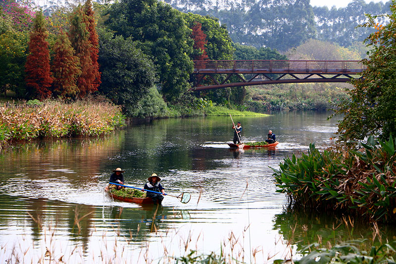 【鱼鸟天堂】海珠湿地纵横交错的河网和幽深恬静的果林为鱼、鸟等生物营造了极佳的生境。湿地的果林里硕果累累,树梢上鸟鸣啾啾,河涌内鱼儿腾跃,基塘内群虾拥挤,沟堑中螃蜞相逐。鸟和鱼相伴甚欢,林与塘相益得彰。