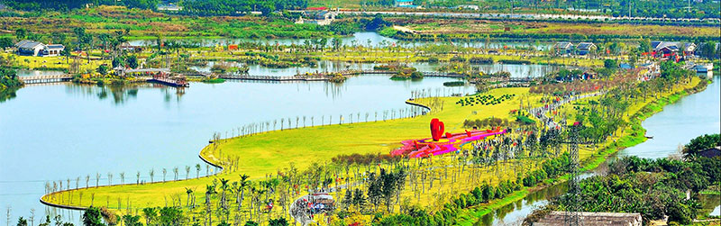 海珠国家湿地公园,俗称万亩果园,位于广州市海珠区东南部,北面琶洲会展,南望大学城,东临国际生物岛,西跨城市新中轴,总面积约1100公顷,被誉为广州“绿心”。其中,海珠湿地核心区域869公顷为国家湿地公园建设范围,是我国特大城市最大、最美的城央国家湿地公园。目前开放区域包括海珠湖、海珠湿地一期和海珠湿地二期,游人可充分领略“水乡、花乡、果乡”的湿地特色风貌,是市民可及、可达、可享受的世外桃源。
