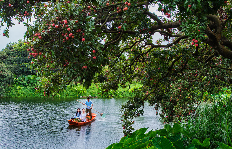 【果源与基因库】海珠湿地现存果林约1万亩,盛产荔枝、龙眼、杨桃、黄皮、香蕉、芒果、番石榴、番木瓜等岭南佳果,其中石硖龙眼、红果杨桃、鸡心黄皮、胭脂番石榴等十多种名优果品名扬中外。海珠湿地古老树种众多,是岭南水果的发源地、重要原产地和基因库,保存了丰富的果树种质资源,拥有古老的岭南基塘农业文化。