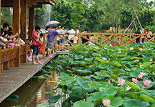 海珠湿地一期约67公顷,是海珠湿地核心区和生态湿地示范区。湿地一期注重将岭南水乡的本土文化特色融入湿地美景,以恢弘大气的岭南式牌坊和历史悠久的镬耳屋作为湿地的标志性建筑。在这里,您可以漫步于湖畔柳荫,赏菊观荷;可以启程于花洲古渡,寻访岭南古老的印记;可以泛舟于湖漾烟渚,观曲殇飞绫,赏古荫帆影;可以徜徉于都市田园,怡然自乐,感叹造物者之无尽藏。