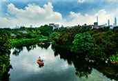 海珠区古称“江南洲”,位于广州市的中部,是由珠江前后航道环绕的一个岛区,四面环江,是广州老四区当中唯一集江、涌、林、园为一体的生态区。