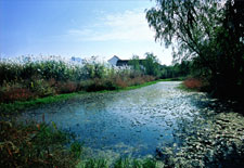 “西溪之胜,独在于水”,水是西溪的灵魂和生命,湿地内河流总长100多公里,约70%的面积为河港、池塘、湖漾、沼泽等水域,其间水道如巷、河汊如网,鱼塘栉比、诸岛棋布;“西溪之重,重在生态”,园区内芦白柿红、桑青水碧、竹翠梅香、鹭舞燕翔,冷、野、淡、雅,皆成天趣,动植物资源极其丰富,其陆地绿化率在85%以上。